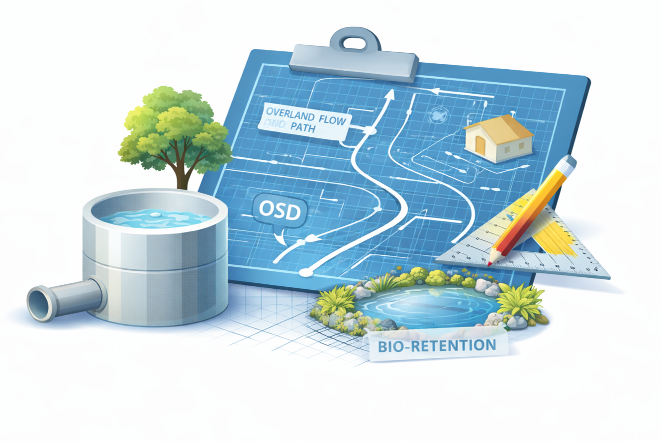 On-Site Detention (OSD) systems temporarily store stormwater during rainfall events and release it slowly into the council drainage network.